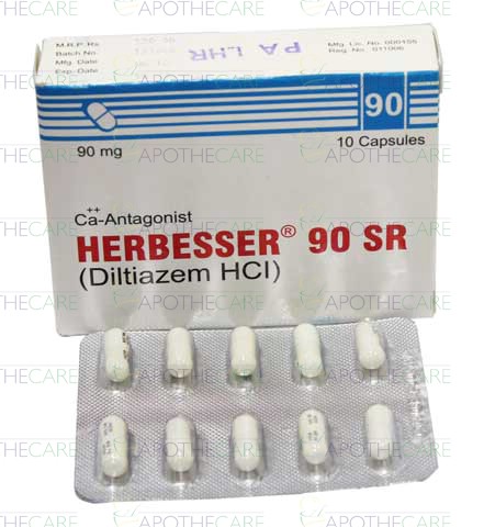 Product Name: Herbesser SR Cap 90mg 10'sProduct Form: CapsulesPack Size: 10'sMarketed By: HIGHNOON LABORATORIES LTD.Generic Category: Anti-HypertensiveIngredients: Diltiazem HCL