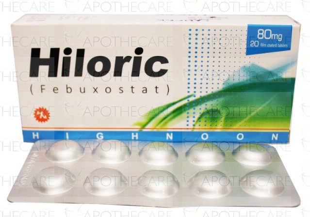 Product Name: Hiloric Tab 80mg 20'sProduct Form: TabletsPack Size: 20'sMarketed By: Highnoon LaboratoriesGeneric Category: Anti-GoutIngredients: Febuxostat