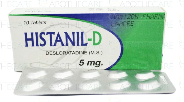Product Name: Histanil-D Tab 5mg 10'sProduct Form: TabletsPack Size: 10'sMarketed By: Wilshire Laboratories (Pvt) LtdGeneric Category: Anti-HistamineIngredients: Desloratadine