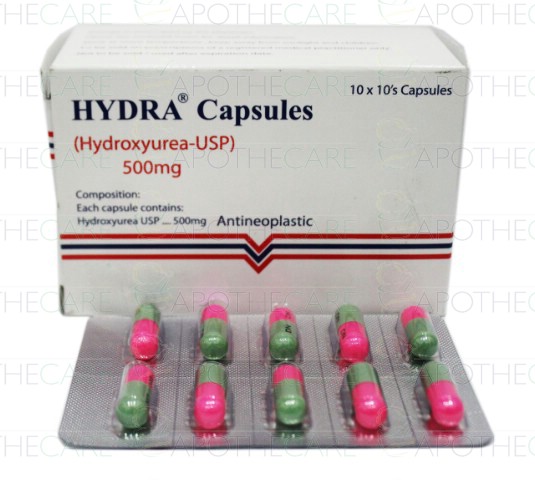 Product Name: Hydra Cap 500mg 100'sProduct Form: CapsulesPack Size: 100'sMarketed By: MEDINET PHARMACEUTICALSGeneric Category: Anti-CancerIngredients: Hydroxyurea