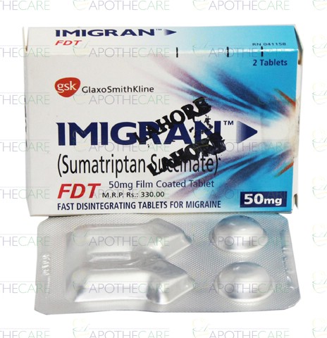 Product Name: Imigran FDT Tab 50mg 2'sProduct Form: TabletsPack Size: 2'sMarketed By: Glaxosmithkline Pakistan LimitedGeneric Category: ANTI-MIGRAINEIngredients: Sumatriptan