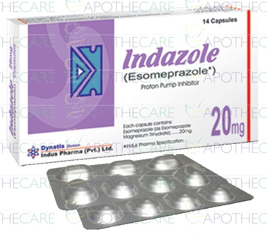 Product Name: Indazole Cap 20mg 14'sProduct Form: TabletPack Size: 14'sMarketed By: INDUS PHARMA (PVT) LTDGeneric Category: Anti-ulcerantIngredients: Esomeprazole