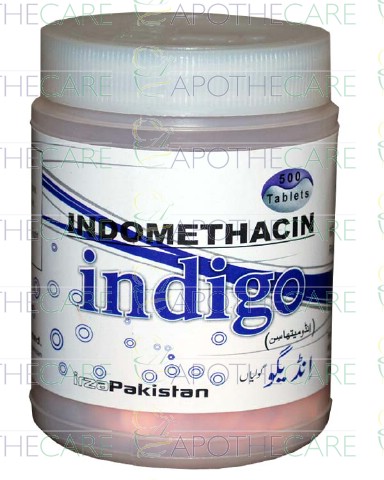 Product Name: Indigo Tab 25mg 500'sProduct Form: TabletPack Size: 500'sMarketed By: IRZA PHARMA PVT LTDGeneric Category: NSAIDIngredients: Indomethacin