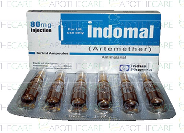 Product Name: Indomal Inj 80mg 6Ampx1mlProduct Form: InjectionPack Size: 6Amp x 1mlMarketed By: INDUS PHARMA (PVT) LTDGeneric Category: Anti-MalarialIngredients: Artemether, Lumefantrine
