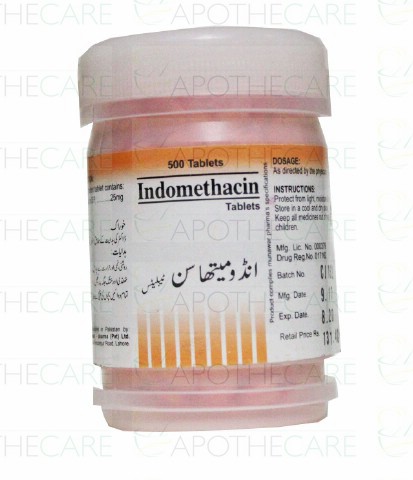 Product Name: Indomethacin Tab 25mg 500'sProduct Form: TabletPack Size: 500'sMarketed By: Munawar PHARMA PVT LTDGeneric Category: NSAIDIngredients: Indomethacin
