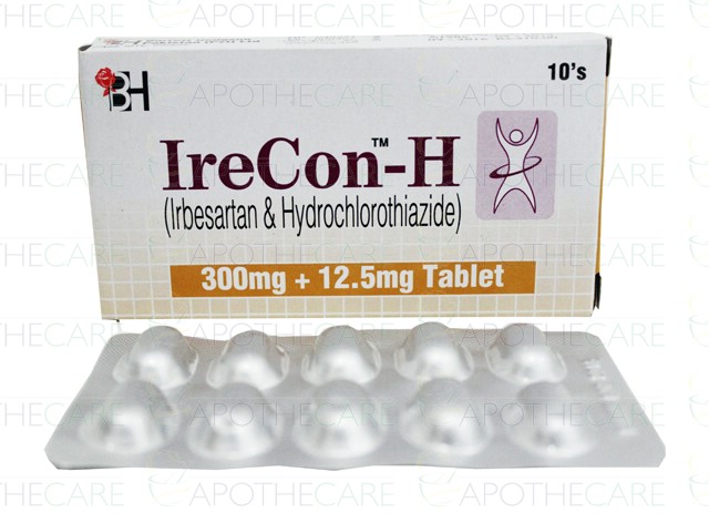 Product Form: TabletsPack Size: 10'sMarketed By: BARRETT HODGSON PAKISTAN (PVT) LTDGeneric Category: Anti-HypertensiveIngredients: Irbesartan300mg, Hydrochlorothiazide 12.5mg