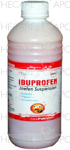 Product Name: Jaefen Syp 100mg/5ml 450mlProduct Form: SyrupPack Size: 450mlMarketed By: IRZA PHARMA PVT LTDGeneric Category: NSAIDIngredients: Ibuprofen