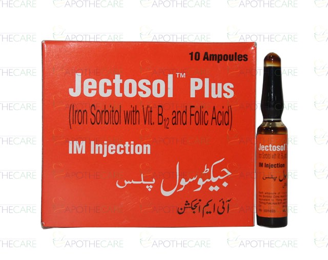 Product Name: Jectosol Plus IM Inj 10Ampx1.5mlProduct Form: InjectionPack Size: 10Ampx1.5mlMarketed By: BARRETT HODGSON PAKISTAN (PVT) LTDGeneric Category: Anti-AnemicIngredients: Iron Sorbitol Citric Acid Complex