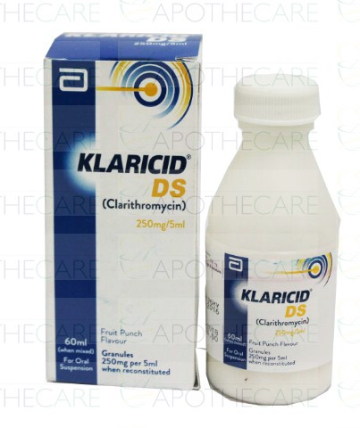 Product Name: Klaricid DS Susp 250mg/5ml 60mlProduct Form: SuspensionPack Size: 60mlMarketed By: Abbott Laboratries (Pakistan) LimitedGeneric Category: Macrolide Anti-BacterialIngredients: Clarithromycin