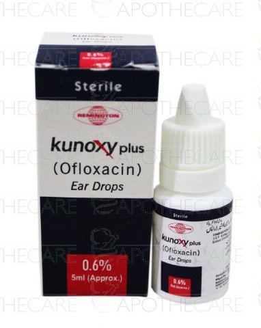 Product Name: Kunoxy Plus Ear Drops 0.6% 5mlProduct Form: DropsPack Size: 5mlMarketed By: Remington PharmaceuticalsGeneric Category: Anti InfectiveIngredients: Ofloxacin