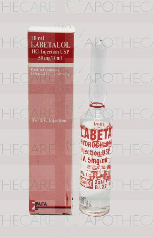 Product Name: Labetalol HCl Inj 50mg 1Vialx10mlProduct Form: InjectionPack Size: 1Vialx10mlMarketed By: Zafa PharmaGeneric Category: Anti-HypertensiveIngredients: Labetalol HCl