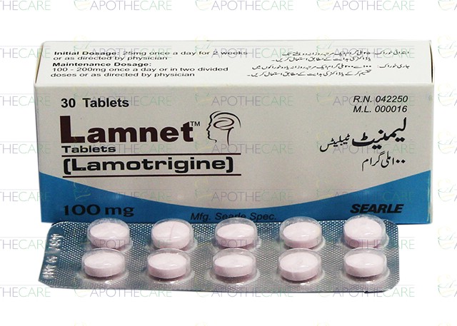 Product Name: LAMNET Tab 100mg 30'sProduct Form: TabletsPack Size: 30'sMarketed By: SEARLE PAKISTAN Generic Category: ANTI-EPILEPTICIngredients: Lamotrigine