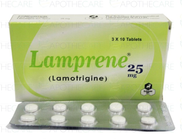 Product Name: Lamprene Tab 25mg 3x10'sProduct Form: TabletsPack Size: 3x10'sMarketed By: Schazoo Pharmaceuticals (Pvt) LtdGeneric Category: Anti-EpilepticIngredients: Lamotrigine
