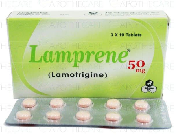 Product Name: Lamprene Tab 50mg 3x10'sProduct Form: TabletsPack Size: 3x10'sMarketed By: Schazoo Pharmaceuticals (Pvt) LtdGeneric Category: Anti-EpilepticIngredients: Lamotrigine
