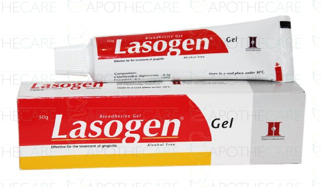 Product Name: Lasogen Gel 50gProduct Form: GelPack Size: 50gMarketed By: HIMONT PHARMA (PVT) LTDGeneric Category: Anti-septic Ingredients: Chlorhexidine Digluconate 0.2g