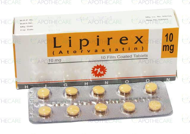 Product Name: LIPIREX Tab 10mg 10'sProduct Form: TabletPack Size: 10'sMarketed By: HIGHNOON LABORATORIES LTD.Generic Category: STATINSIngredients: ATORVASTATIN CALCIUM