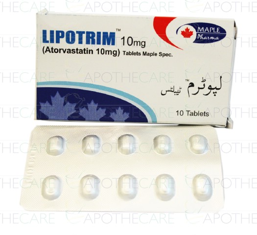 Product Name: Lipotrim Tab 10mg 10'sProduct Form: TabletsPack Size: 10'sMarketed By: Maple Pharmaceutical (Pvt) LtdGeneric Category: StatinsIngredients: Atorvastatin
