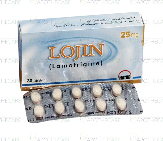 Product Name: Lojin Tab 25mg 30'sProduct Form: TabletsPack Size: 30'sMarketed By: Hilton Pharma (Pvt) Ltd.Generic Category: Anti-EpilepticIngredients: Lamotrigine