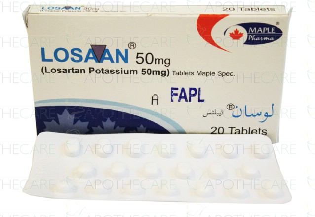 Product Name: Losaan Tab 50mg 20'sProduct Form: TabletsPack Size: 20'sMarketed By: Maple Pharmaceutical (Pvt) LtdGeneric Category: Anti-HypertensiveIngredients: Losartan