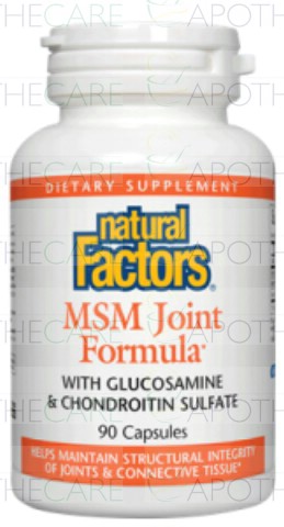 Feature: MSM Joint Formula is a synergistic blend of naturally-derived compounds; MSM, Glucosamine and Chondroitin Sulfates which support healthy joint function.* Glucosamine and Chondroitin provide support for the cartilage while MSM (Methyl-sulfonyl-methane) provides the body with a bioavailable form of organic sulfur. Taken together, these three nutrients provide triple joint support for healthy mobility.