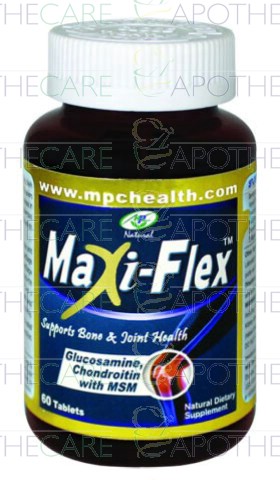 Product Name: Maxi-Flex Tab 60'sProduct Form: TabletsPack Size: 60'sMarketed By: MPC Health & FoodGeneric Category: Nutritional SupplementIngredients: Glucosamine sulphate, Chondrotin sulphate, MSM, Collagen, Boswellia serrata, Vitamin C, Sodium, Boron, Manganese