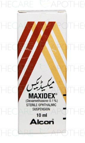 Product Name: Maxidex Ophthalmic Susp 0.1% 10mlProduct Form: Ophthalmic SuspensionPack Size: 10mlMarketed By: Alcon PharmaGeneric Category: Anti-InfectiveIngredients: Dexamethasone
