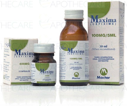 Product Name: Maxima Dry Susp 100mg/5ml 30mlProduct Form: SuspensionPack Size: 30mlMarketed By: MACTER INTERNATIONAL (PVT) LTD Generic Category: Cephalosporin Antibiotic