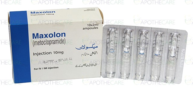 Product Name: Maxolon Inj 10mg 10Ampx2mlProduct Form: InjectionPack Size: 10Ampx2mlMarketed By: Glaxosmithkline Pakistan LimitedGeneric Category: GASTROPROKINETICIngredients: Metoclopramide HCl