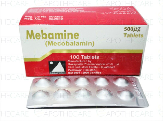 Product Name: Mebamine Tab 500mcg 100'sProduct Form: TabletsPack Size: 100'sMarketed By: Rakaposhi PharmaceuticalsGeneric Category: Vitamin B12Ingredients: Mecobalamine