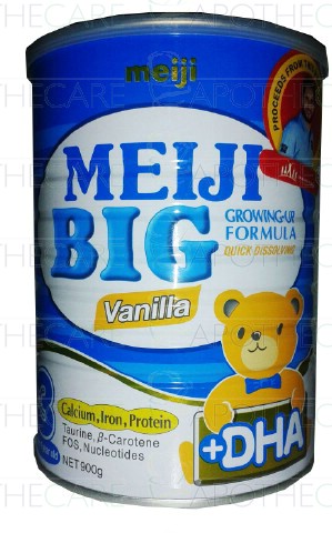 Product Name: Meiji Big Powder 900gProduct Form: PowderPack Size: 900gMarketed By: Meiji Co., LtdGeneric Category: Nutritional SupplementIngredients: DHA (Docosahexaenoic acid),Calcium, FOS (Fructo-oligosaccharides),Iron,Protein,Taurine,Beta carotene