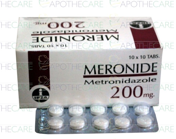 Product Name: Meronide Tab 200mg 10x10'sProduct Form: TabletPack Size: 10x10'sMarketed By: IRZA PHARMA PVT LTDGeneric Category: ANTI-AMOEBICIngredients: Metronidazole