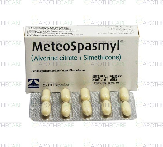 Product Name: Meteospasmyl Cap 2x10'sProduct Form: CapsulesPack Size: 2x10'sMarketed By: TABROS PHARMA PVT.LTD
