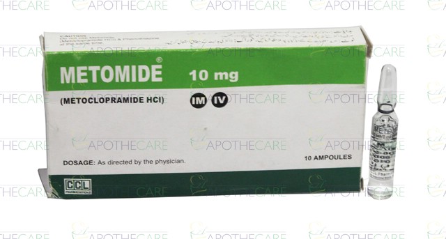 Product Name: Metomide Inj 10mg 10Ampx2mlProduct Form: InjectionPack Size: 10Ampx2mlMarketed By: CCL PharmaceuticalsGeneric Category: GastroprokineticIngredients: Metoclopramide