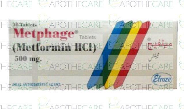 Product Name: METPHAGE Tab 500mg 50'sProduct Form: TabletsPack Size: 50'sMarketed By: EFROZE CHEMICAL PVT LTDGeneric Category: ORAL HYPOGLYCEMIC Ingredients: Metformin HCl