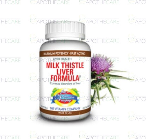 Product Name: Milk Thistle Liver Formula Cap 20'sProduct Form: CapsulesPack Size: 20'sMarketed By: The Vitamin CompanyGeneric Category: Liver ProtectantIngredients: Milk Thistle (Silybum Marianum seed from a 4:1 Extract) Equivalent to 100 mg for milk Thistle