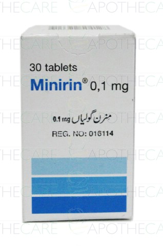 Product Name: MINIRIN Tab 0.1mg 30'sProduct Form: TabletsPack Size: 30'sMarketed By: ATCO LABORATORIES (PVT) LTDGeneric Category: Hormonal ProductIngredients: Desmopressin Acetate