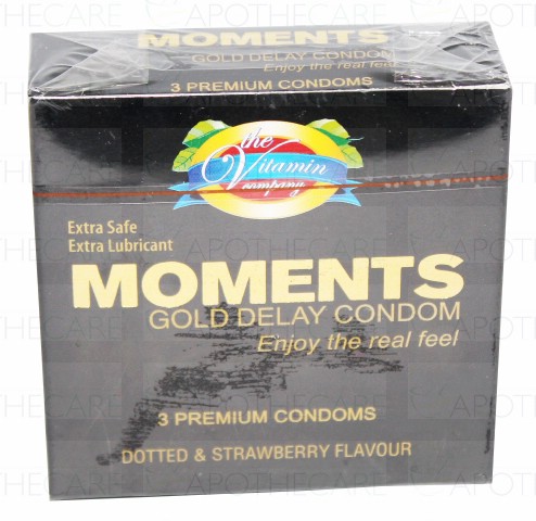 Product Name: Moments Gold Delay Condom 3'sProduct Form: CondomPack Size: 3'sMarketed By: The Vitamin Company