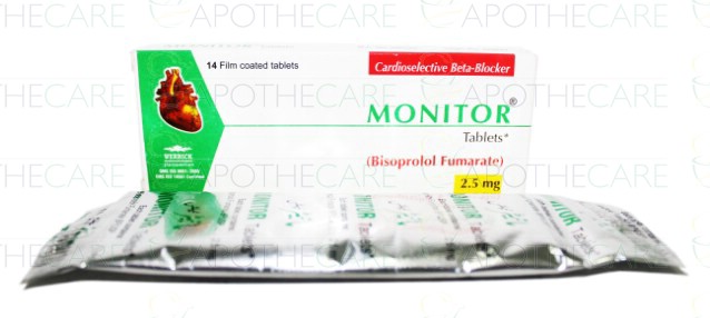 Product Name: Monitor Tab 2.5mg 14'sProduct Form: TabletsPack Size: 14'sMarketed By: Werrick PharmaceuticalsGeneric Category: Anti-HypertensiveIngredients: Bisoprolol Fumarate