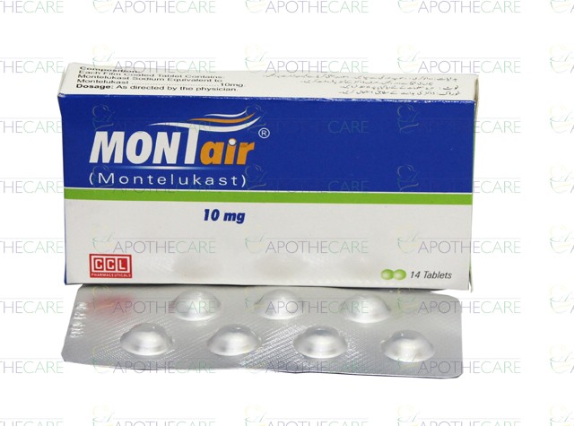 Product Name: Montair Tab 10mg 14'sProduct Form: TabletsPack Size: 14'sMarketed By: CCL PharmaceuticalsGeneric Category: Anti-Leukotriene Ingredients: Montelukast
