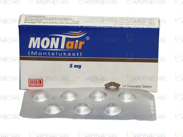 Product Name: Montair Tab 5mg 14'sProduct Form: TabletsPack Size: 14'sMarketed By: CCL PharmaceuticalsGeneric Category: Anti-Leukotriene Ingredients: Montelukast