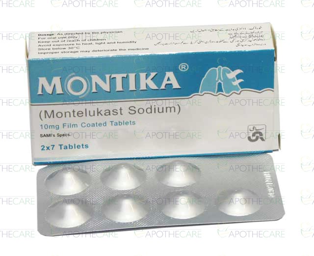 Product Name: Montika Film Coated Tab 10mg 2x7'sProduct Form: TabletsPack Size: 2x7'sMarketed By: SAMI PHARMACEUTICALSGeneric Category: Anti-LeukotrieneIngredients: Montelukast