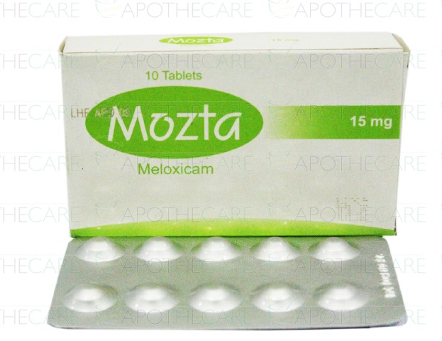 Product Name: Mozta Tab 15mg 10's Product Form: TabletsPack Size: 10's Marketed By: A'raf PharmaGeneric Category: NSAIDIngredients: Meloxicam
