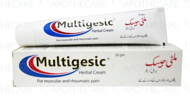 Product Name: Multigesic Cream 30gm 4'sProduct Form: CreamPack Size: 30gmMarketed By: Ray Pharma (Pvt) Ltd Generic Category: NSAIDIngredients: Diethylamine Salicylate