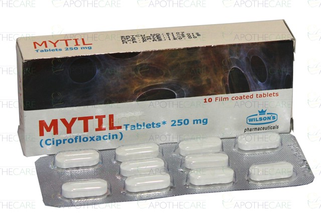 Product Name: Mytil Tab 250mg 1x10'sProduct Form: TabletsPack Size: 1x10'sMarketed By: WILSON'S PHARMACEUTICALSGeneric Category: Quinolones Anti-BacterialIngredients: Ciprofloxacin
