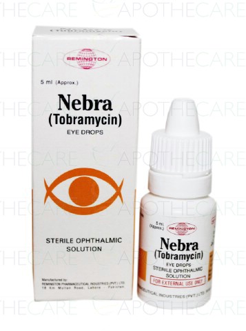 Product Name: Nebra Eye Drops 0.3% 5mlProduct Form: DropsPack Size: 5mlMarketed By: Remington PharmaceuticalsGeneric Category: Anti-InfectiveIngredients: Tobramycin
