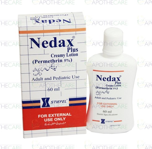 Product Name: Nedax Plus Creamy Lotion 60mlProduct Form: LotionPack Size: 60mlMarketed By: GLAXOSMITHKLINE Generic Category: ScabicideIngredients: Permethrin