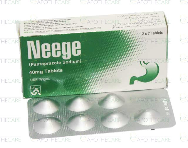 Product Name: Neege Tab 40mg 2x7'sProduct Form: TabletsPack Size: 2x7'sMarketed By: SAMI PHARMACEUTICALSGeneric Category: ANTI-ULCERANTIngredients: Pantoprazole Sodium