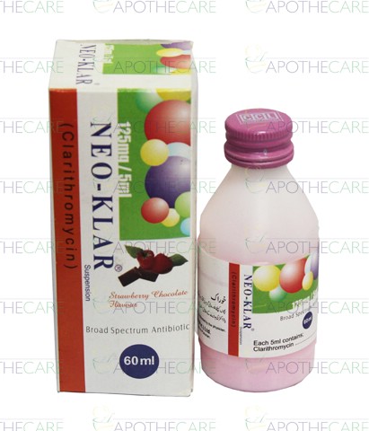 Product Name: Neo-Klar Susp 125mg/5ml 60mlProduct Form: SuspensionPack Size: 60mlMarketed By: CCL PharmaceuticalsGeneric Category: Macrolide Anti-Bacterial