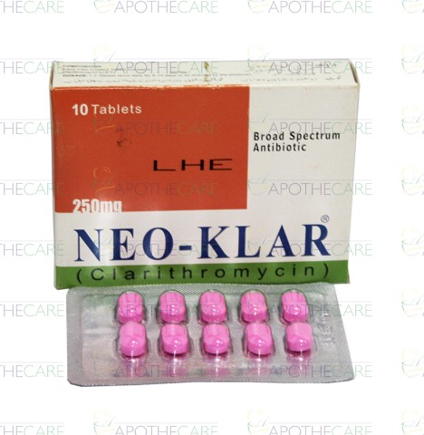 Product Name: Neo-Klar Tab 250mg 10'sProduct Form: TabletsPack Size: 10'sMarketed By: CCL PharmaceuticalsGeneric Category: Macrolide Anti-BacterialIngredients: Clarithromycin