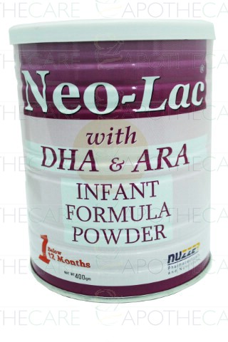 Product Name: Neo-Lac 1 Milk Powder 400gProduct Form: PowderPack Size: 400gMarketed By: Nuzzer (Pvt) LtdGeneric Category: Nutritional Supplement
